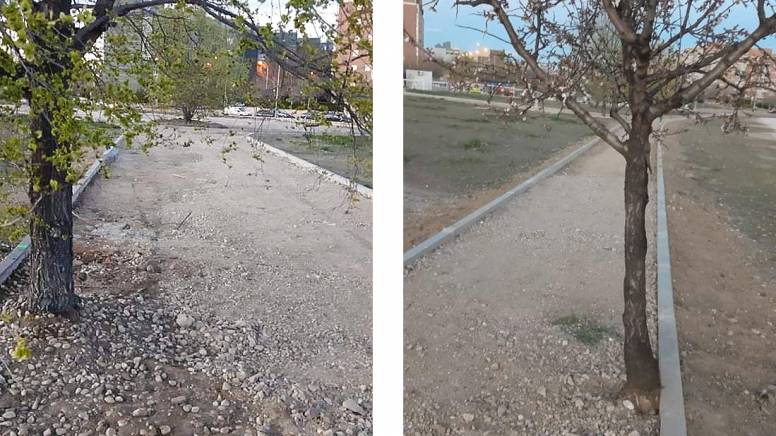 Javier nos envía también un par de fotos, en este caso del nuevo carril bici del Parque Manolito Gafotas, alertando de que en dos tramos del mismo hay dos almendros dentro del carril, lo que obviamente no es de recibo. Por favor, soluciónenlo… y háganlo sin dañar a los árboles, que no tienen culpa de semejante situación absurda.