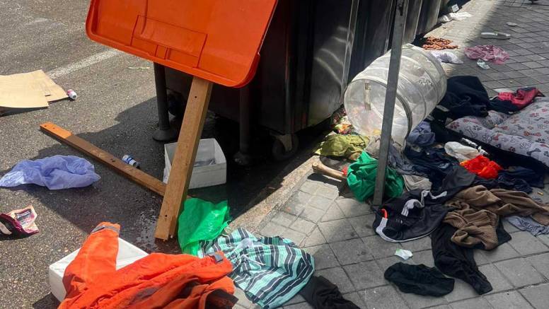 Vecinos de Vía Carpetana nos hacen llegar su queja, acompañada de fotos, por la situación recurrente que se encuentran con los contenedores de basura a la altura del número 342 de la calle. Explican que la recogida se hace por la tarde, y durante la mañana los mismos y la acera adyacente ya se encuentran como se ve en la foto, motivo por el cual están ya desesperados, pues han enviado hojas de reclamación al Ayuntamiento y también a la empresa encargada de las basuras y únicamente les dan justificaciones que no les satisfacen.