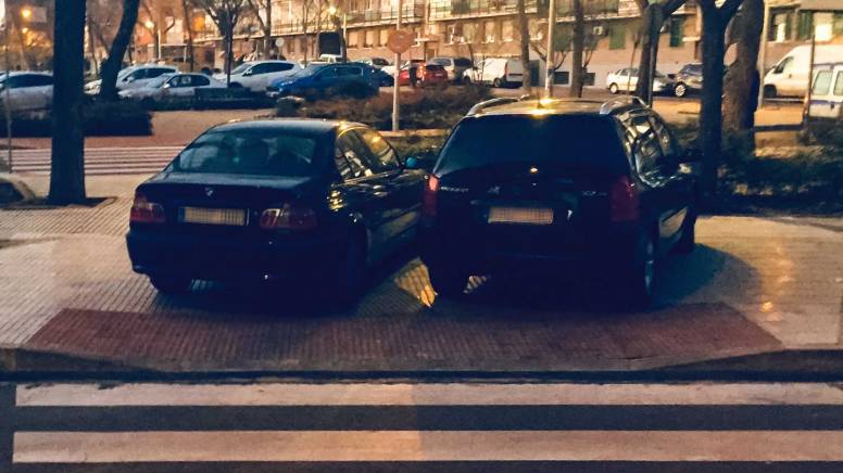 En la calle Camino de las Cruces, entre el 25 (donde está realizada la foto) y el 35, en el barrio de Carabanchel Alto, las aceras están completamente levantadas, llenas de boquetes, socavones, y los coches aparcan todos los días encima de las mismas. Ir por esta calle se ha convertido en una carrera de obstáculos que pone en riesgo a los ciudadanos y les hace imposible poder caminar. El Ayuntamiento por su parte no pone bolardos para impedir que suban los coches a las aceras y tampoco las arreglan.