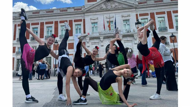 El CDE Las Cruces, club de gimnasia rítmica que entrena en Carabanchel, ha celebrado este año San Isidro de una forma muy especial. Su conjunto cadete realiza un ejercicio con la música del chotis de Madrid, lo han adaptado para poder hacerlo en la calle, y el 15 de mayo salieron a compartirlo con los madrileños y las madrileñas en el centro de la capital: realizaron varias actuaciones en la Plaza Mayor, delante del Palacio Real y en la Puerta del Sol, todas ellas con muy buena acogida. “A la gente le encantaron y se acercaron muchas personas a celebrar San Isidro con nosotras y a dar la enhorabuena a las chicas por lo bonito que hicieron su ejercicio”, nos explica Alejandra, su entrenadora, que también nos hace llegar fotos. Preciosa iniciativa, enhorabuena.