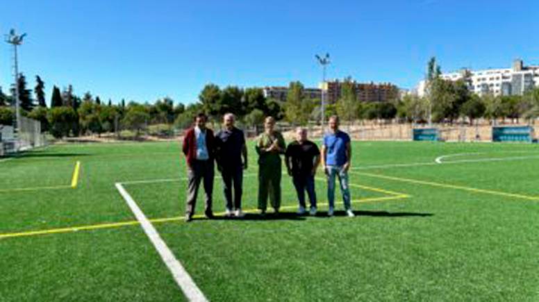- La renovación ha consistido en la sustitución de tierra por césped artificial en el campo de fútbol 11, el acondicionamiento de los vestuarios, la dotación de aseos para el público en la zona del graderío y la instalación de un aparcamiento para bicicletas