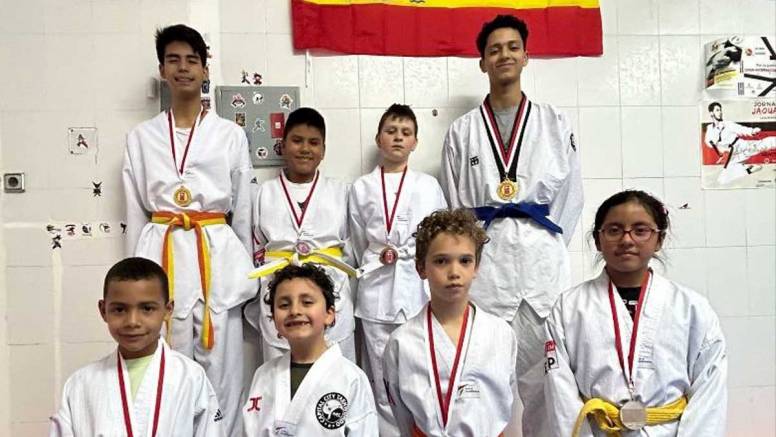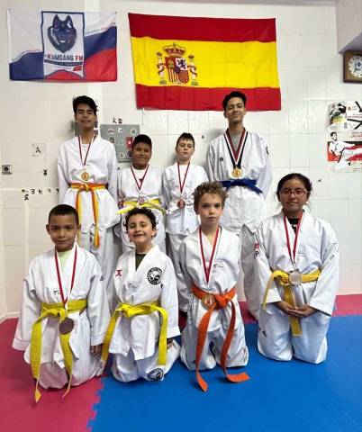 Los nueve participantes con sus medallas