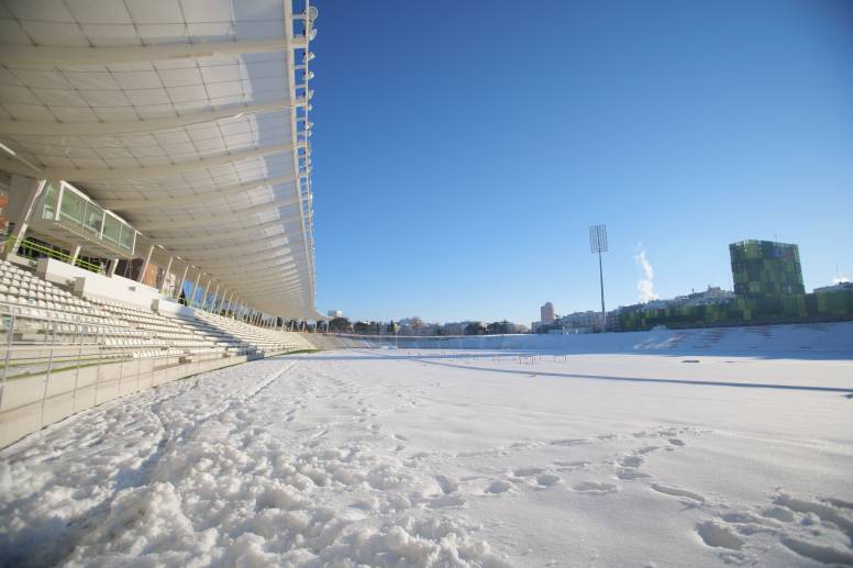 La concejala delegada de Deporte, Sofía Miranda, ha visitado esta mañana el Estadio de Vallehermoso para comprobar el estado en el que ha quedado esta emblemática instalación madrileña tras el paso de Filomena por Madrid y ayudar en la retirada de la nieve de la pista, a lo que se han sumado un grupo de unos 20 voluntarios del área delegada y vocales vecinos del distrito de Chamberí.