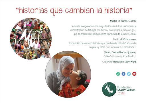 La exposición ‘historias que cambian la historia’, que permanecerá en el centro de La Latina hasta el día 30 de marzo, está organizada por Fundación Mary Ward dentro de las actividades de celebración de su 25º aniversario. La muestra pretende reflejar y dar a conocer las historias de vida de mujeres que han logrado cambiar su propio destino. Mujeres que han escapado de la trata de personas, que han logrado montar sus propios negocios a pesar de la desigualdad o que han salido del círculo de la pobreza a costa de inmensos sacrificios… son algunos de los ejemplos de las historias de vida que se dan a conocer.