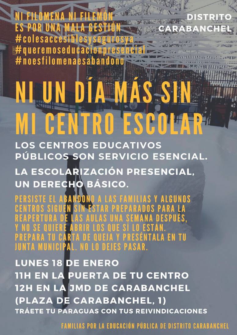 En Carabanchel, como en otros distritos, protestamos por la inacción de las administraciones que deja a nuestros peques sin cole y a las familias al límite de sus fuerzashttps://t.co/eVmeQ7Foop pic.twitter.com/bc6s7Zc171 pic.twitter.com/3OmGycAGHS