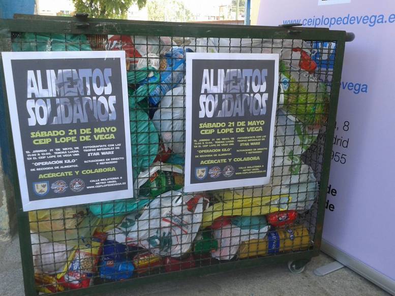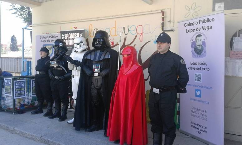 La Operación Kilo que organizó el CEIP Lope de Vega el pasado 21 de mayo, no solo contó con el apoyo del Banco de Alimentos, de Cáritas, de la AMPA del colegio y de su Claustro. También asistió de forma altruista a esta cita con la solidaridad la Legión 501 de Star Wars, que forma parte del Ejército Imperial y desarrolla, junto con otras legiones, eventos y desfiles allá donde se les solicita.Con el tirón de la última entrega de la saga de La Guerra de las Galaxias, fueron muchos los niños, mayores y frikis que acudieron a pasar una mañana, calurosa pero divertida y solidaria, al “Lope”, como ya todos conocemos a este prolífico colegio público. Allí disfrutaron también de los conciertos de Torre de Favia y de la Dormunt Garage Band, formada por maestros del propio centro educativo. Asimismo, hubo espacio para el humor, con otra colaboración especial y solidaria de Pablo Gime, quien encandiló a pequeños y a grandes con gracia y positivismo.