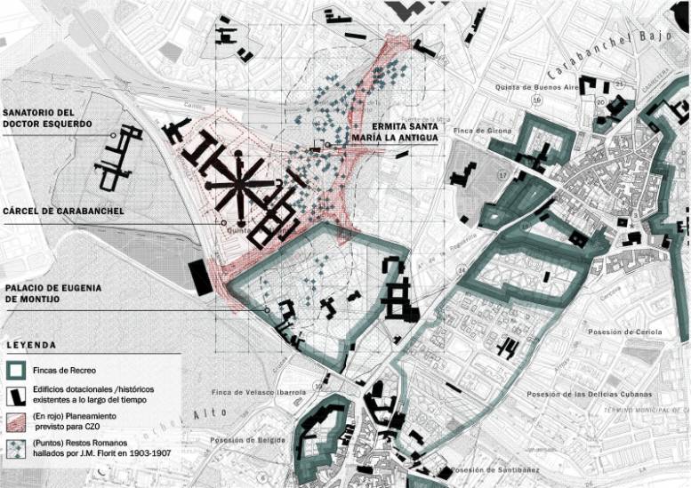 Carabanchel Zona Cero (“CZ0”, en adelante) es el entorno de la ermita de Santa María la Antigua, al lado del solar de la cárcel de Carabanchel y el parque de Eugenia de Montijo. CZ0 contiene elementos de todas las capas históricas que han marcado al barrio. CZ0 es el origen de la población que más tarde se mudó a sus respectivos núcleos del Alto y del Bajo, CZ0 es la brecha de separación entre los distritos de Latina y de Carabanchel (antes todo era Carabanchel) y, a su vez, CZ0 es también frontera entre el Alto y el Bajo.