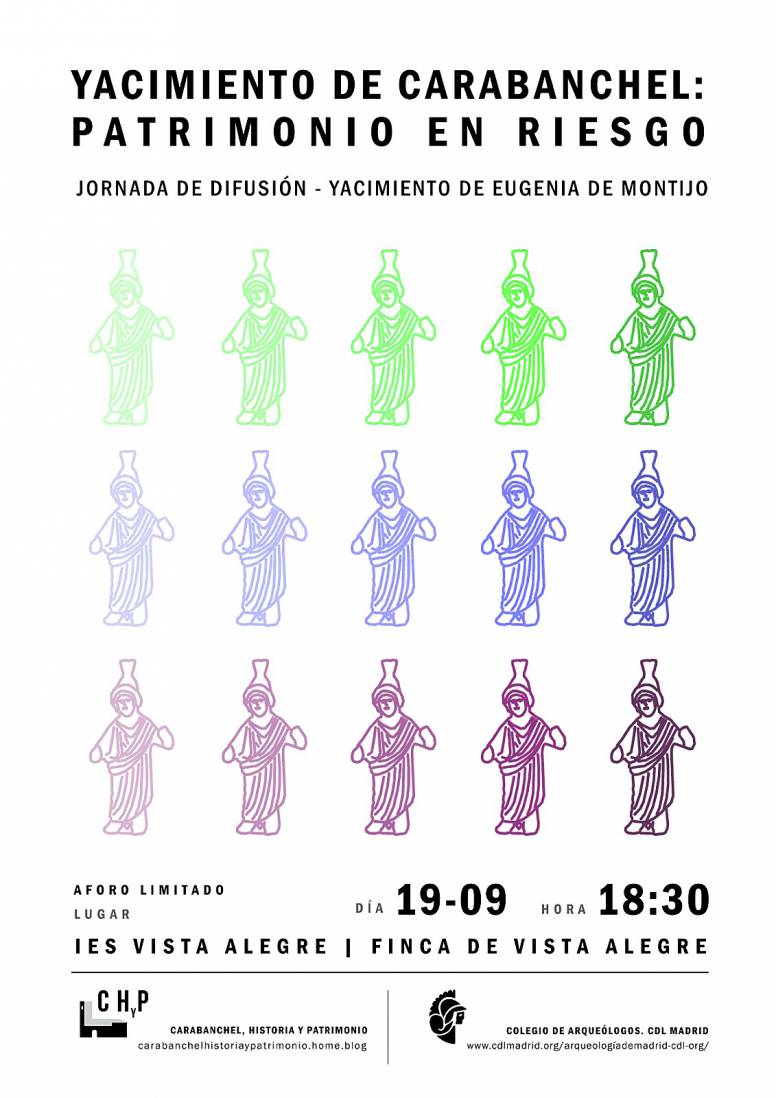 Continuando con nuestra labor sobre el patrimonio de Carabanchel, el próximo día 19 de septiembre, a las 18:30, se celebrará en el IES Vista Alegre el acto Yacimiento de Carabanchel: patrimonio en riesgo, una nueva jornada de difusión sobre el yacimiento de Eugenia de Montijo, que cuenta con restos arqueológicos que datan desde la II Edad del Hierro hasta la actualidad.