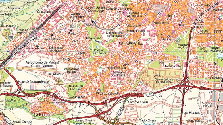 Todo ello recopilado con límites imprecisos sin importancia, y teniendo en cuenta que se construyó mucho desde que Carabanchel Bajo y Alto se unieron a Madrid como comenté antes. Como caso a resaltar, diré que en este sufrido distrito se instalaron grandes cocheras y cuarteles del Ejército, uno de los cuales ostentaba una torre vigía desde donde se divisaba un panorama vastísimo en tiempos pasados, pues era el punto más alto de la zona.