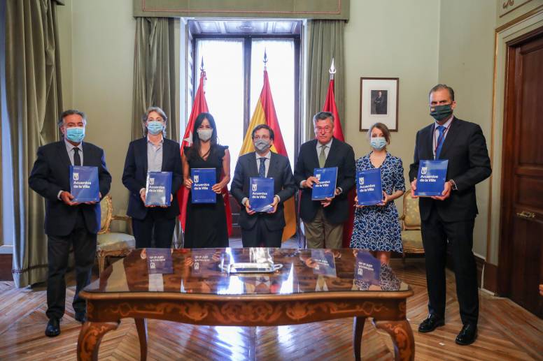 El Pleno del Ayuntamiento de Madrid ha aprobado por unanimidad los Acuerdos de la Villa, un documento que recoge las medidas propuestas por las mesas sectoriales para la reactivación de Madrid tras la pandemia de la COVID-19. Han sido un total de 352 medidas las que se han aprobado en una sesión extraordinaria celebrada en el antiguo Salón de Plenos de la Plaza de la Villa.