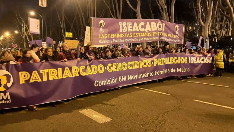 El lema elegido para este año por la Comisión 8M, el espacio de coordinación creado en 1977 y que lleva desde entonces organizando estas marchas así como las huelgas de 2018 y 2019, ha sido “Patriarcado, genocidios, privilegios. #SeAcabó”. Las organizadoras han querido denunciar con este eslogan “tres ejes que se interrelacionan entre sí” y han exigido demandas como “el fin del pacto patriarcal, del negacionismo de las violencias, de las trabas que aún existen para acceder al aborto en el sistema sanitario público o la falta de una educación sexual y afectiva”, pero también acabar con el “genocidio del pueblo palestino” y con otras violaciones de derechos humanos que están sufriendo otros pueblos y otras comunidades o activistas a las que se le está expoliando sus territorios para ponerlos al servicio del extractivismo y el neoliberalismo.