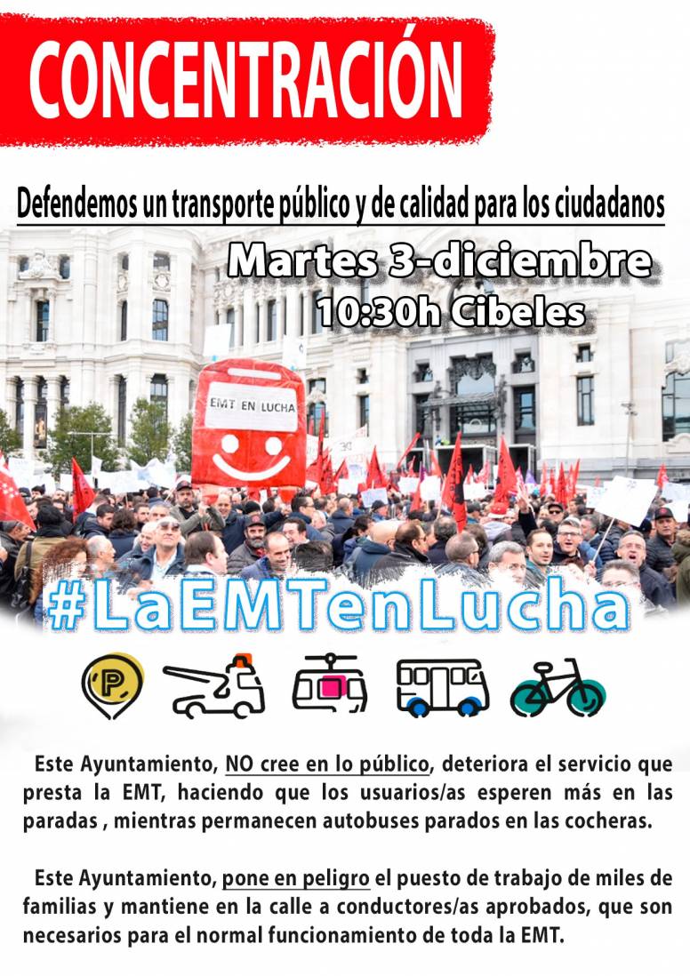 Por la tarde, toda la familia de la EMT luchará por un transporte público de calidad. La manifestación tendrá lugar en el CRTM (Santa Engracias) a las 17:30.