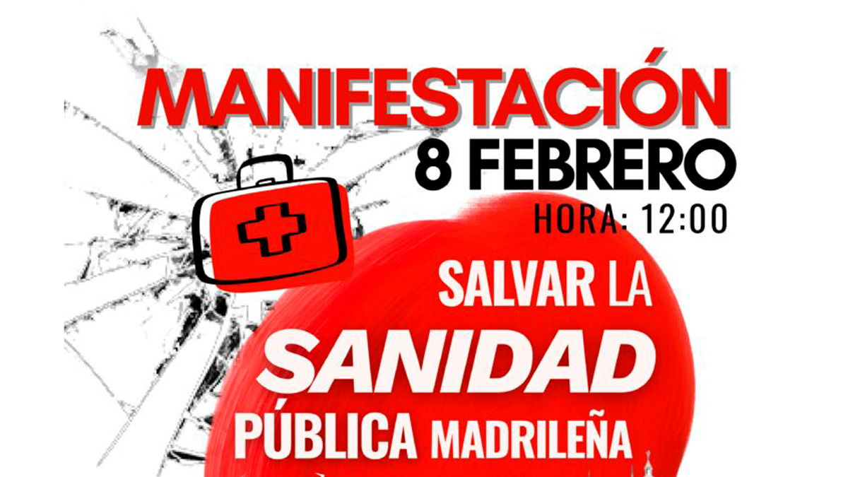 La Federación Regional de Asociaciones Vecinales de Madrid (FRAVM), junto a la Asociación para la Defensa de la Sanidad Pública de Madrid (ADSPM), CC OO Madrid y UGT Madrid, convoca una gran manifestación unitaria el domingo 8 de febrero a las 12:00. La marcha recorrerá el centro de la capital desde el Ministerio de Sanidad hasta la Puerta del Sol.