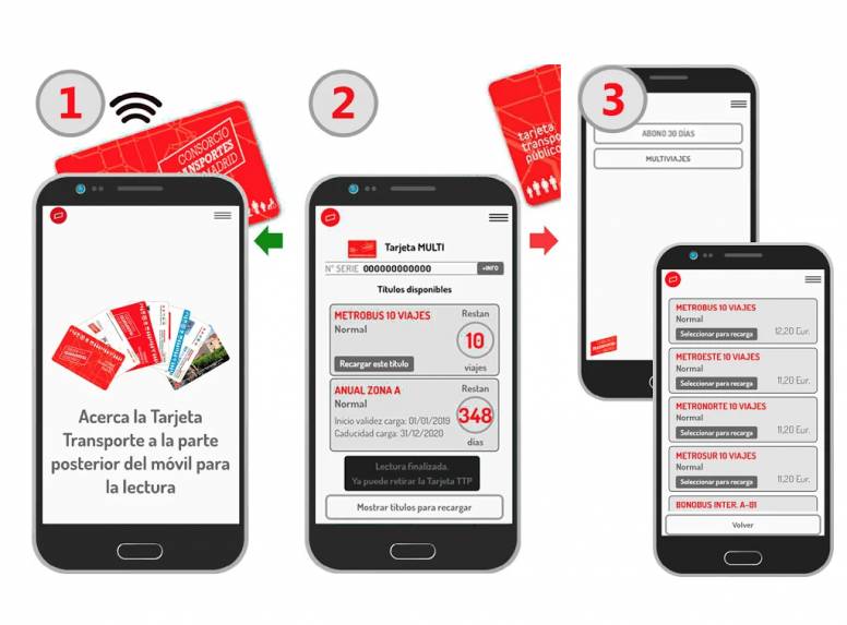 Su uso es muy intuitivo y, además, en la página web del Consorcio Regional de Transportes (www.crtm.es) está disponible un video explicativo sobre cómo utilizarla. La aplicación solicita que se registre una tarjeta de crédito y, una vez realizado este paso, solo hay que acercar la tarjeta de transporte al móvil para realizar la recarga. La aplicación le indica qué títulos puede cargar y el coste. Hasta la fecha, más de 33.000 personas se han descargado ya la aplicación. De ellas, más del 61% son usuarios del abono joven y más del 13% del abono transporte para la zona A. El Consorcio ya trabaja para que la aplicación también esté disponible para teléfonos con sistema operativo iOS.
