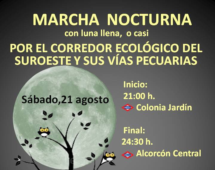 El próximo sábado 21 de agosto tendrá lugar una nueva MARCHA NOCTURNA. En esta ocasión, la marcha transitará por el corredor ecológico del suroeste.