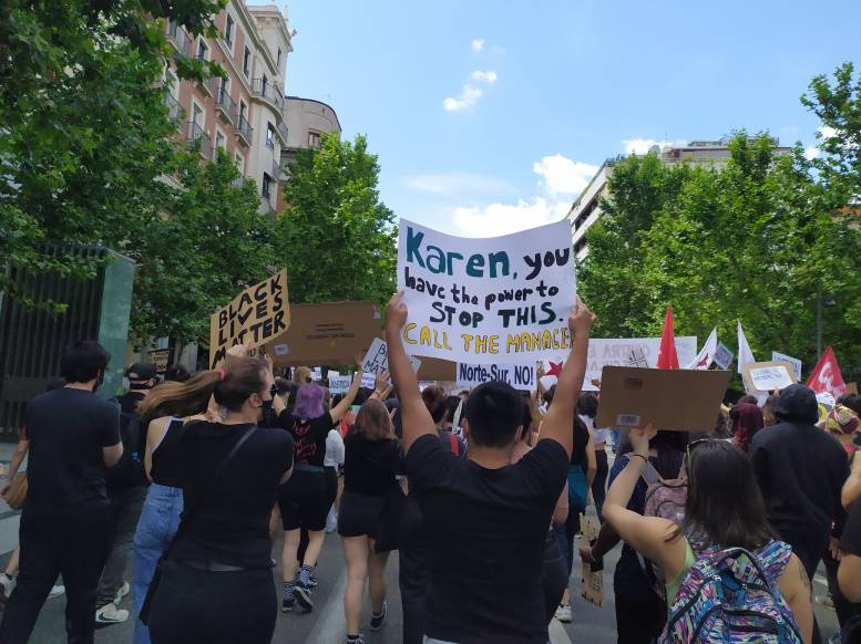 El asesinato del ciudadano afroamericano George Floyd a manos de un policía en Minnesota ha servido de desencadenante para que gente en varias ciudades de todo el mundo haya salido a manifestarse por las desigualdades raciales. En Madrid, en un encuentro convocado por CNAAE (Comunidad Negra Africana y Afrodescendiente en España), casi 3.000 personas se han reunido enfrente de la embajada estadounidense para homenajear la memoria de George Floyd, pero también la de algunos que murieron en nuestro país como Lucrecia Pérez, Mame Mbaye o Samba Martine, que falleció en 2016 a causa de la desatención sanitaria que recibió mientras estaba internada en el CIE de Aluche. En los 38 días que pasó encerrada, solicitó asistencia médica en más de diez ocasiones, sin éxito. Aquel suceso provocó que las condiciones y existencia de los CIE se comenzaran a cuestionar desde el debate público en nuestro país.
