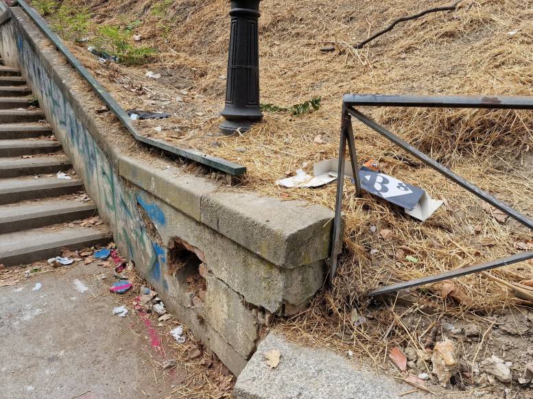 Además, están preocupados por la sensación de inseguridad de la zona, porque el mantenimiento y la limpieza en los nuevos tramos de escalera y rampas que se están haciendo con muros de piedra crearán zonas totalmente tapadas que pueden favorecer la acción de delitos contra las personas, eliminando las barandillas que le daban más visibilidad.