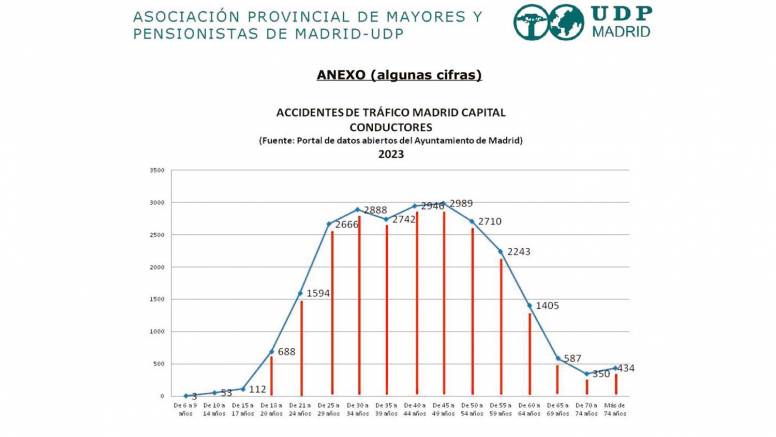 Las cifras de accidentes de tráfico de conductores en el año 2023 publicadas por el ayuntamiento de la capital reducen el porcentaje de accidentes de los mayores como conductores a menos del 5%, elevándolo en tanto peatones a más del 20%.