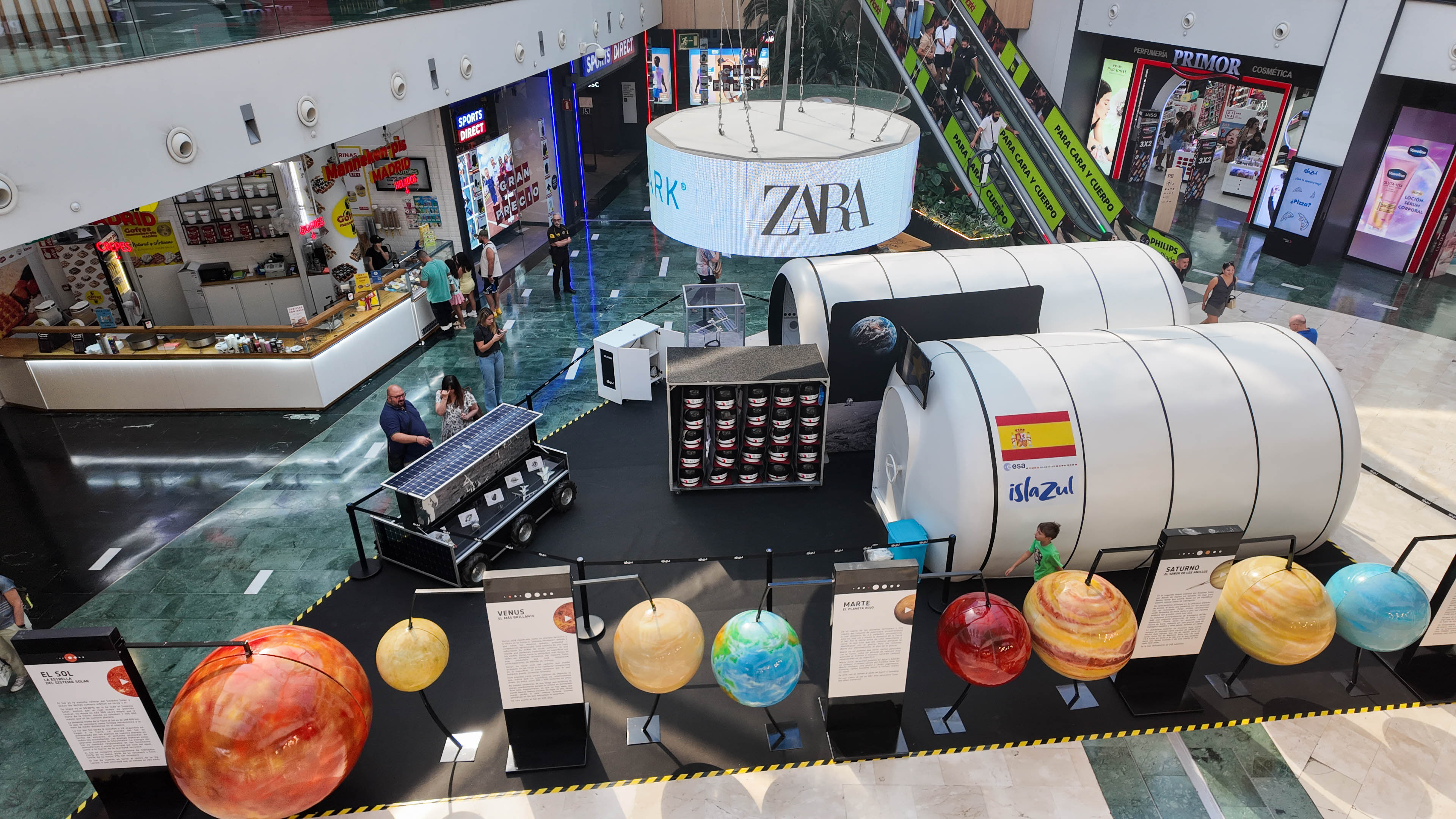 El evento se divide en cuatro espacios diferenciados: dos grandes reactores de naves espaciales donde se desarrollan las experiencias monitorizadas, una exposición de elementos espaciales como un vehículo lunar y un traje de astronauta, y una sección educativa con montajes de planetas y datos científicos. El acceso a la zona del evento se realizará presentando un ticket de compra de cualquiera de las tiendas del centro comercial, siendo socio del Club Happy Shopping.