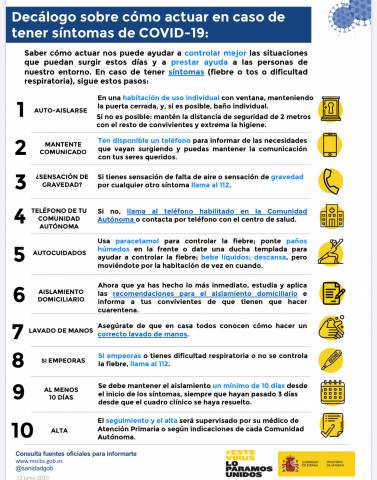 - Si tienes síntomas, aíslate voluntariamente. Tómate la temperatura mañana y noche, y anótalo. Avisa por teléfono al centro de salud.