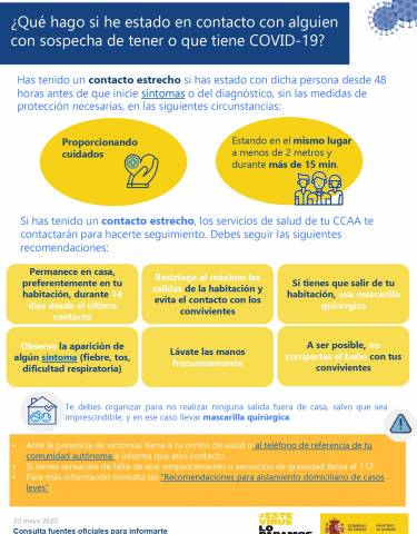 Si has tenido un contacto estrecho, los servicios de salud pública de la comunidad autónoma contactarán contigo para hacerte seguimiento. Previamente, la persona enferma habrá tenido que identificar a todos los contactos estrechos que ha tenido desde los dos días previos a la aparición de síntomas o del diagnóstico.