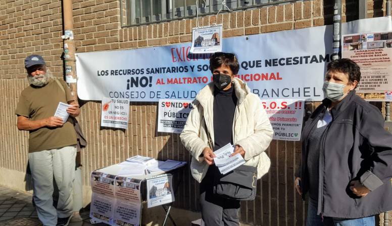 En la mañana de ayer, martes 26 de octubre, Carabanchel defendió sus centros de salud. Diferentes entidades del barrio se organizaron para estar presentes en las puertas de todos los centros de salud del distrito. Ahí seguirán recogiendo firmas durante un mes. El objetivo está claro, defender la sanidad pública madrileña del deterioro provocado por la Comunidad de Madridde, al no dotarla de un presupuesto adecuado, de los recursos humanos y materiales necesarios y, de unas buenas infraestructuras para que los y las profesionales trabajen en unas condiciones dignas y puedan dar una buena atención a la ciudadanía.