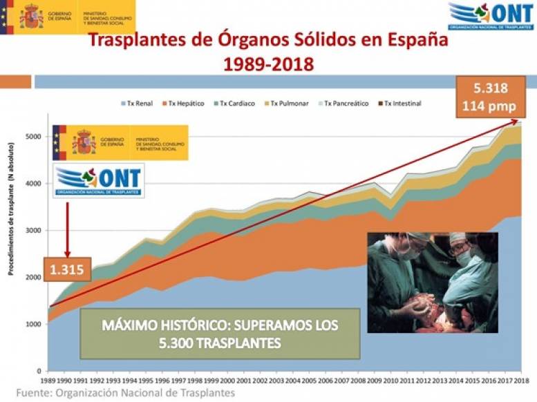 España lleva 25 años liderando la donación de órganos y la realización de trasplantes en el mundo. Existen 44 donantes por cada millón de personas y se realizan más de 5.000 trasplantes anuales, casi 15 trasplantes diarios. Los españoles somos los habitantes del planeta que más posibilidades tenemos de recibir un trasplante si algún día lo necesitáramos.