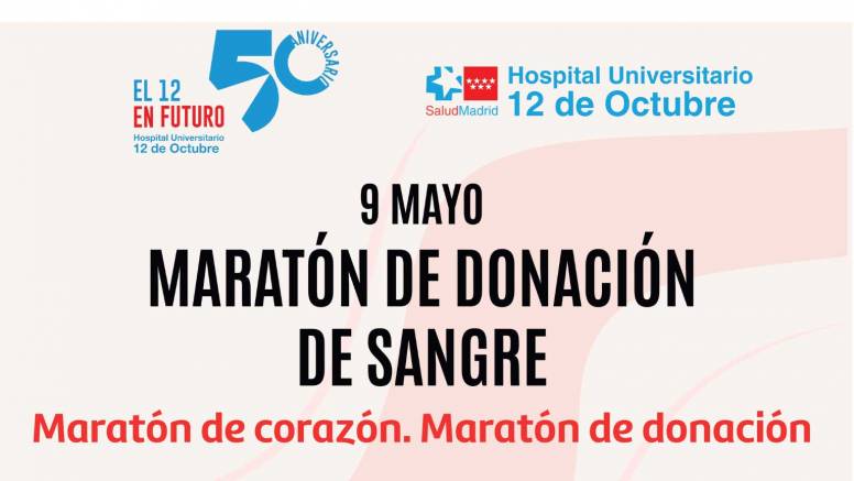 El Hospital 12 de Octubre celebra mañana martes 9 de mayo un nuevo Maratón de Donación de Sangre dentro de la campaña que organiza el Centro de Transfusión en todos los centros hospitalarios con el objetivo de contribuir a mantener las reservas de sangre de la región y cubrir las necesidades de los pacientes.