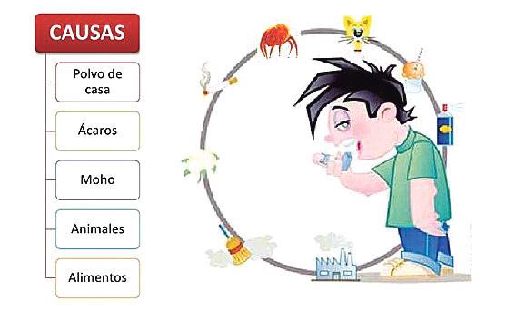 La rinitis alérgica suele estar provocada por el contacto con los ácaros del polvo, los pólenes, el moho o el pelo de los animales domésticos. A este tipo de sustancias se les denomina “alérgenos”, porque son capaces de desencadenar una respuesta exagerada en la persona que es alérgica y producir la rinitis alérgica.