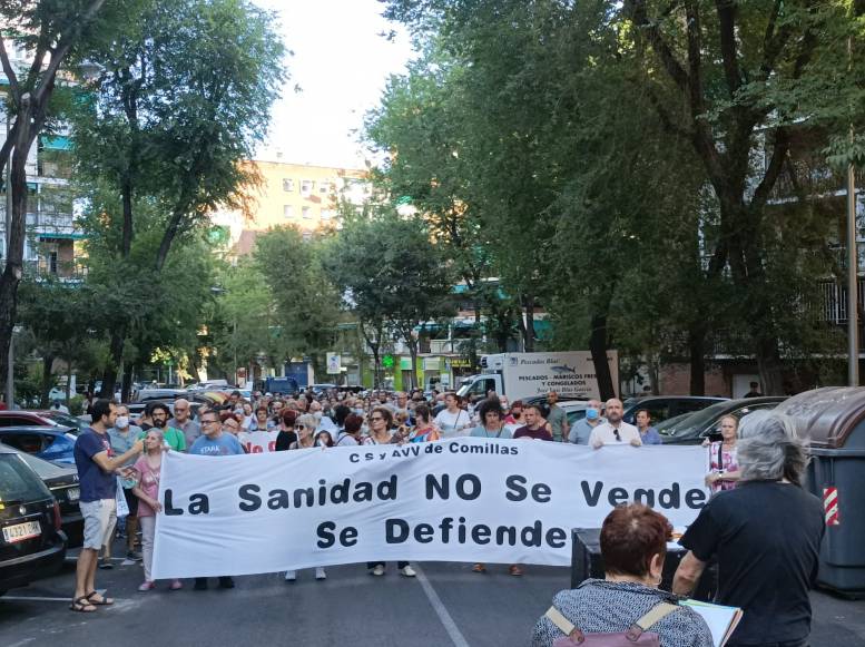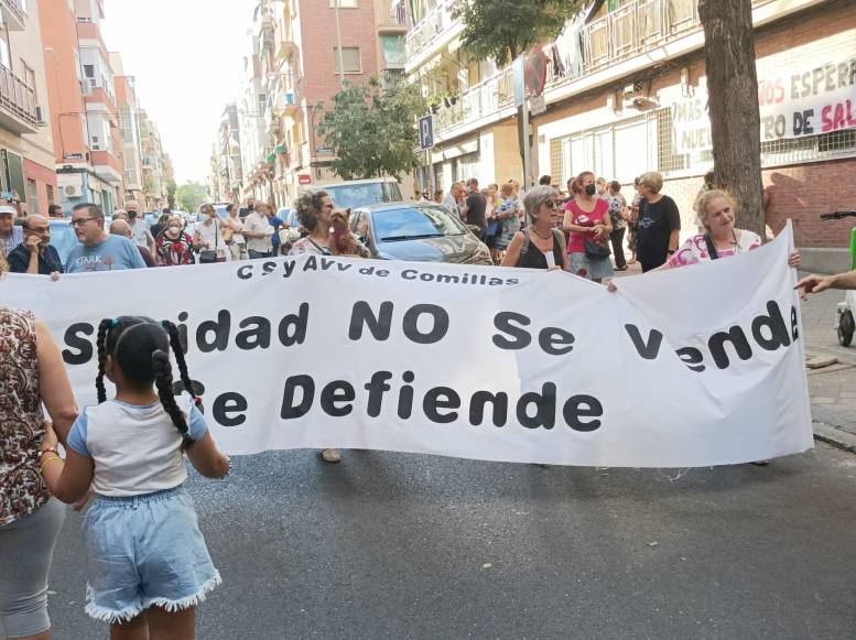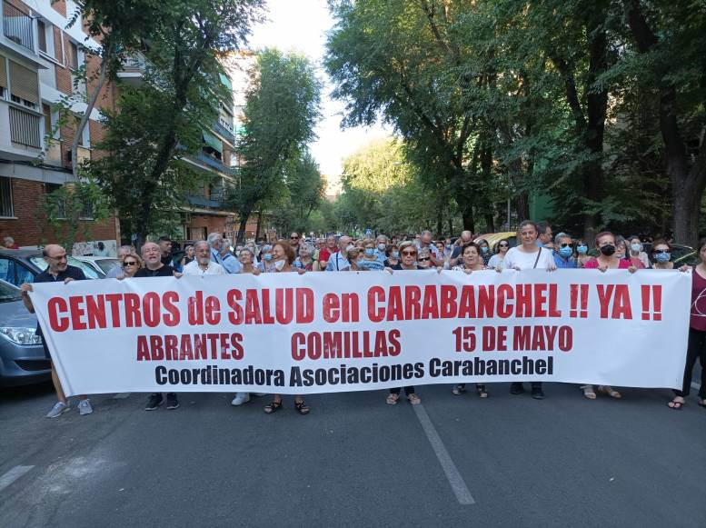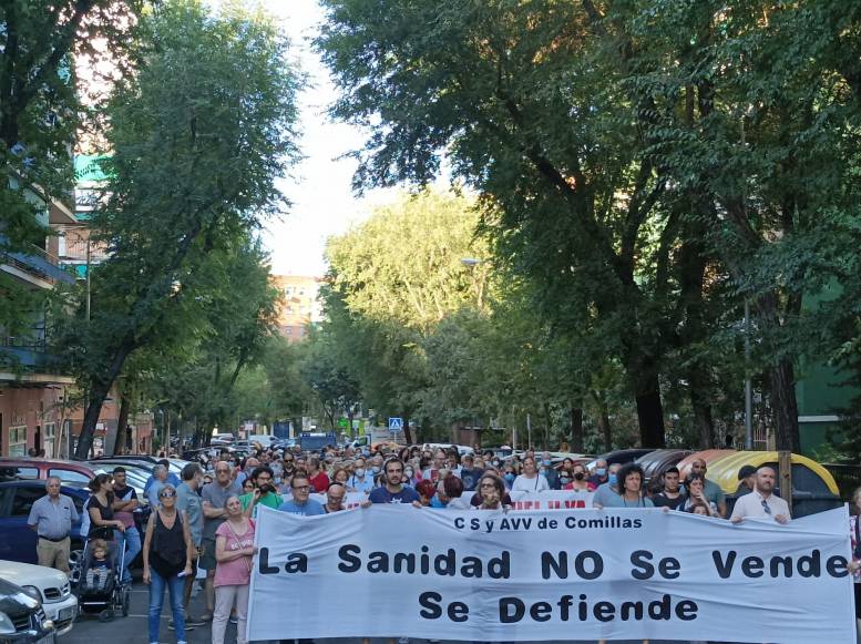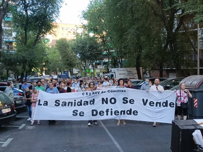 Más de 400 personas se manifestaron en Carabanchel en defensa de la sanidad pública y por un nuevo centro de Salud para Comillas, tras 18 años de reivindicación de un nuevo centro en condiciones. Indignación en los vecinos, que se manifestaron pacíficamente, al saber que en el solar donde tenían previsto hacer el nuevo centro están construyendo un parque. Durante el recorrido se cantaron frases en defensa de la sanidad pública. Es de destacar que no hubo incidentes.
