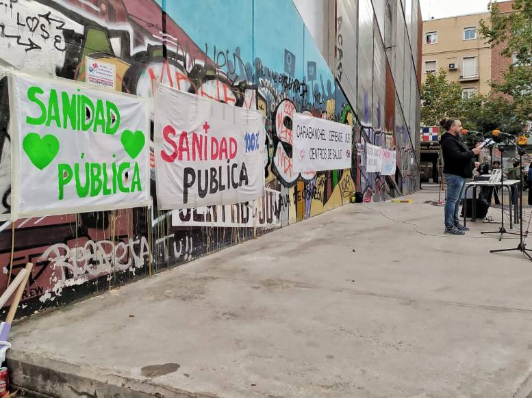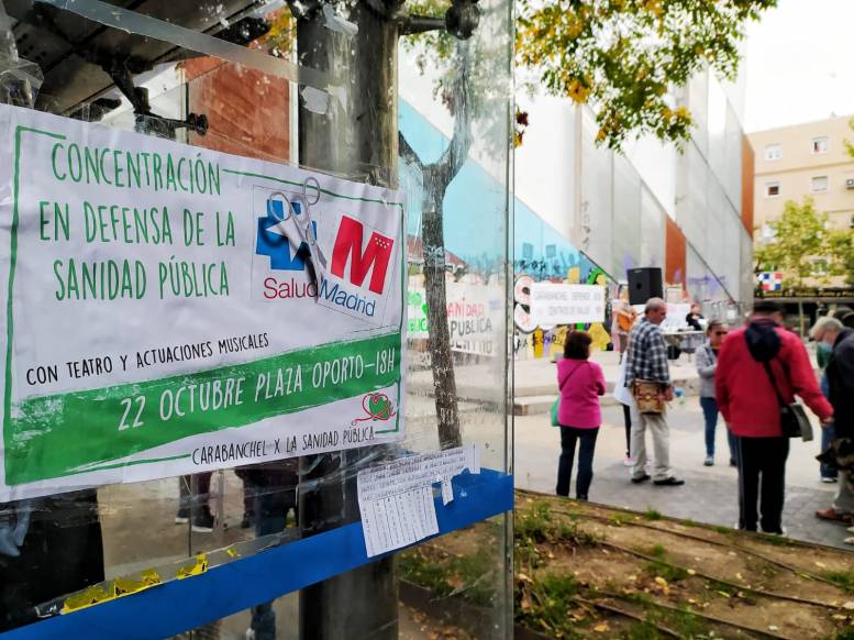 El sábado 22 de octubre tuvo lugar en Carabanchel un acto convocado por la plataforma Carabanchel por la Sanidad Pública para acercar a la ciudadanía el debate sobre el deterioro de la sanidad madrileña. En esta plataforma se agrupan diversas organizaciones del Distrito cuyo objetivo común es la lucha por los servicios públicos: Coordinadora de Asociaciones de Carabanchel, Asamblea 15M, Consejo de Salud de Carabanchel, Asociación de Vecinos de Carabanchel Alto, Grupo de Vecin@s de Puerta Bonita, Karabanchel se Mueve, Plataforma de Pensionistas, Izquierda Unida, Más Madrid, PSOE, y Podemos. Entre todas se organizó con gran eficacia y unitariamente este evento, difundido masivamente mediante carteles y octavillas en todo el Distrito en las semanas previas.
