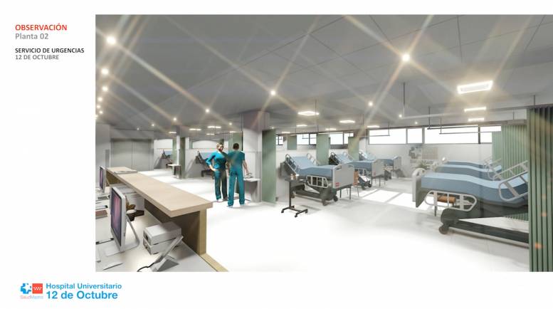 Las nuevas Urgencias permanecerán en su ubicación actual y estarán conectadas directamente al nuevo edificio de hospitalización. Actualmente, este último proyecto se encuentra en fase de redacción. Cuando concluyan todos estos planes, el hospital habrá renovado de forma completa sus instalaciones, ya que también está prevista la remodelación del edificio oncológico y la demolición de infraestructuras en desuso. Todos los programas, junto a otras acciones de mejora que se están desarrollando y algunas más que se iniciarán próximamente, darán lugar a un nuevo y renovado Hospital 12 de Octubre.