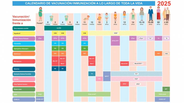 En la Comunidad de Madrid disponemos de un calendario de vacunación para toda la vida desde antes del nacimiento hasta la edad adulta. Este calendario se actualiza periódicamente en función de la evidencia científica disponible e incluye vacunas frente a más de 15 enfermedades que se administran en función de la situación personal y el estado de salud. Las vacunas incluidas en el calendario de vacunación para toda la vida se administran sin coste para el ciudadano en los centros de salud o centros de atención sanitaria autorizados para vacunación. La actualización del año 2025 incluye las siguientes novedades: