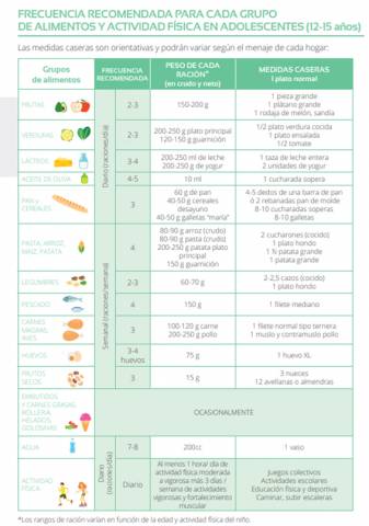 — Ejercer una influencia favorable en la dieta de los adolescentes, con el desarrollo de buenos hábitos alimentarios y patrones de conducta. Promocionar la “dieta mediterránea” con cinco comidas diarias ayudará a evitar consumir alimentos muy calóricos entre horas.