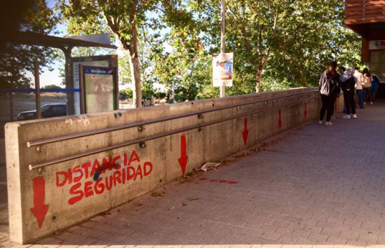 Respecto a la adaptación del centro, se empezó con la rampa de acceso: se pintaron unas rayas que indicaban una de las medidas más importantes de esta pandemia, la distancia de seguridad de metro y medio; una puerta giratoria permitía entrar al centro de salud de uno en uno, encontrando una mesa en la entrada donde profesionales recibían a las personas y con preguntas clave se determinaría cómo y dónde se les iba a atender. Todo ello comprobando e informando de las medidas de higiene de manos y de protección respiratoria, intentando disminuir la angustia ante esta situación tan surrealista. Se estaba intentando priorizar la atención telefónica para evitar que los vecinos y vecinas tuvieran que salir de casa si no era por un motivo muy justificado.