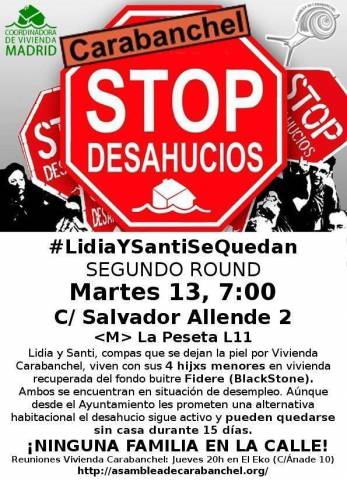 El próximo martes (13/06/2017) una familia de vecinxs, Lidia, Santi sus 4 hijxs menores y el/la que esperan, tienen el segundo intento de desahucio por el fondo buitre Blackstone a través de su filial Fidere.